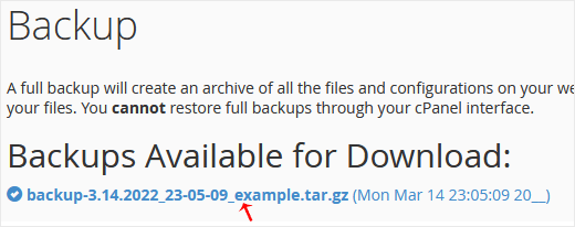 After the cPanel backup is finished, you will receive a notification. You can download backups from Backup > Download a Full Account Backup.