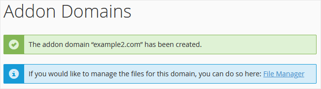 You should see a message that the addon domain has been created.